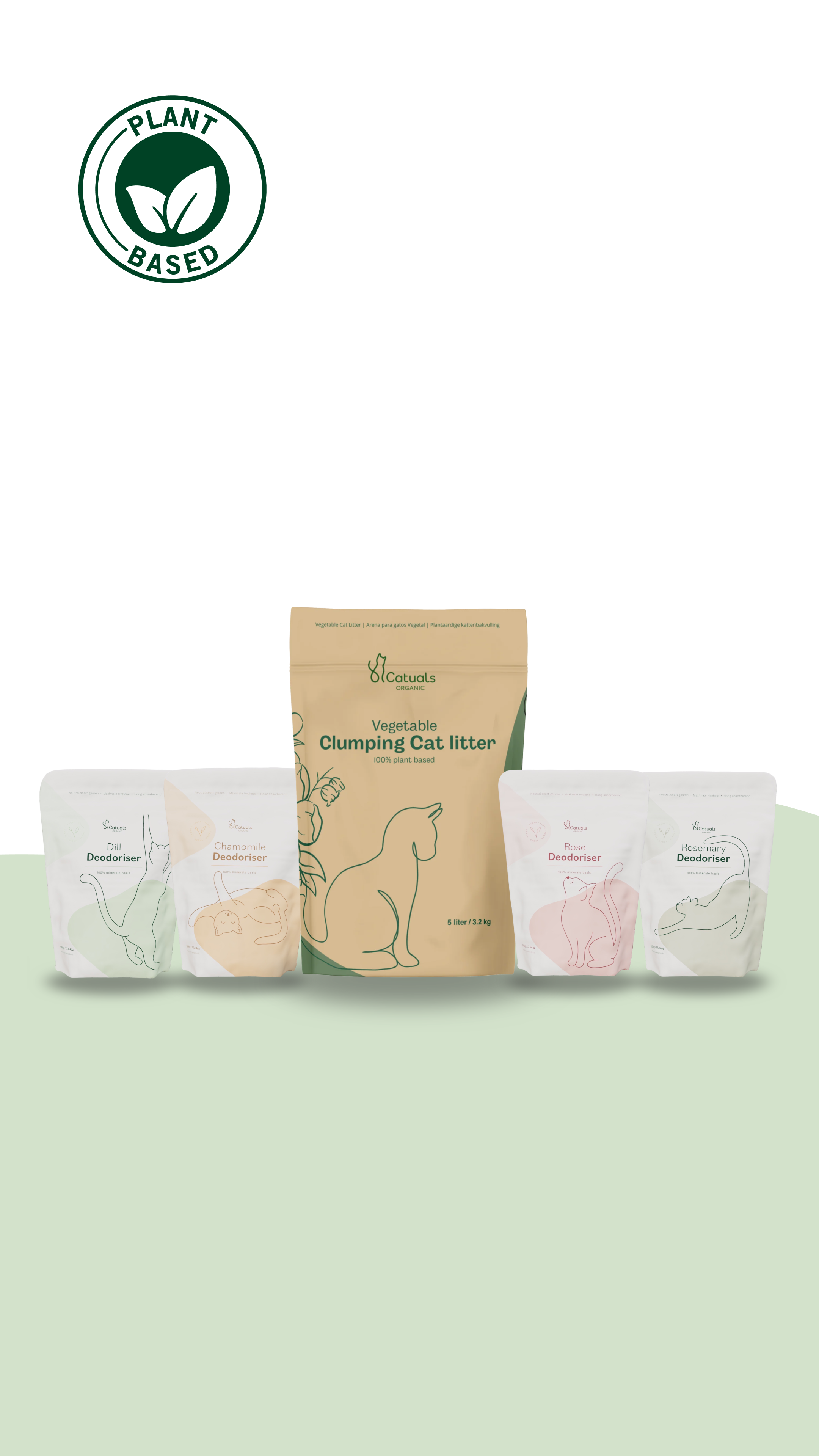 Stap over op een schonere, lichtere en gezondere kattenbak met Catuals plantaardige klontvormende kattenbakvulling.