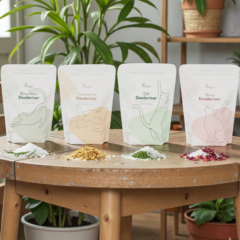 Ervaar de kracht van onze gepatenteerde formule, de enige 100% biologische kattenbak geurverdrijver ter wereld die tegelijkertijd absorbeert, neutraliseert en direct maskeert met een fijne geur.